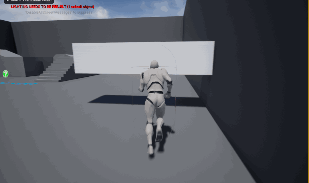 Inside Unreal I also spent the month trying out different types of movement options for the PlayerController. I want there to be a traversal/parkour system because those provide “micro-options” for the player during combat. If you’re playing dodgeball in real life, aside from moving right or left to avoid being hit, you might slide, jump, or duck behind some sort of cover! Aside from being visually appealing, I want dodging the ball to be just as rewarding as firing the ball at another player. The gifs below just show me sort of noodling through some potential options.