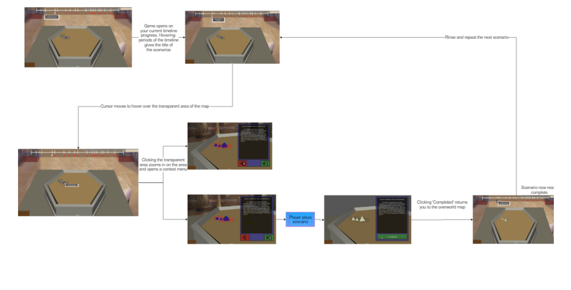 Ideation of UI/UX for the Game Overworld and Start Screen.